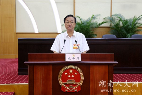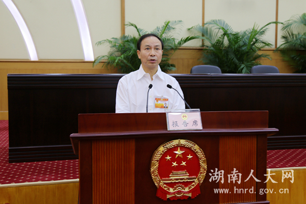受省人民政府委托,省卫生和计划生育委员会主任陈小春作了湖南省人民政府关于健康湖南建设工作情况的报告。