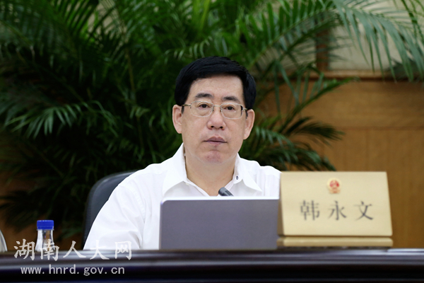 省人大常委会党组书记、副主任韩永文主持第一次全体会议,传达了中共中央政治局常委、全国人大常委会委员长张德江在湘检查调研时的重要讲话精神,并作了关于《湖南省人民代表大会常务委员会关于湖南省第十三届人民代表大会代表名额分配和选举问题的决定(草案)》的说明。