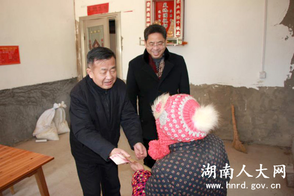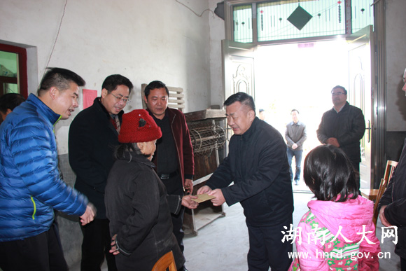 2月5日,省人大常委会原副主任谢勇同志一行深入茶陵县虎踞镇水源村调研指导扶贫工作并慰问了部分贫困户。办公厅副巡视员汤伟谊和机关相关同志,茶陵县人大常委会主任姜衡湘和虎踞镇相关领导陪同。