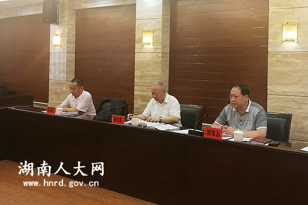 胡伯俊(中)在怀化市人大常委会机关召开座谈会。