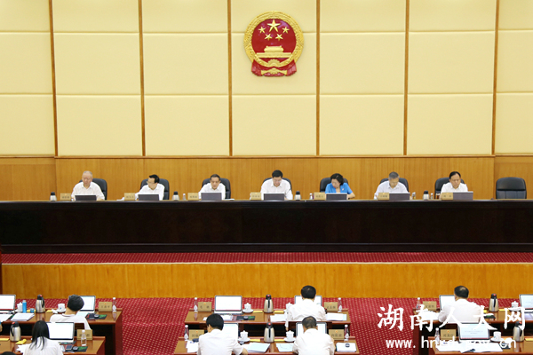 会议听取了省人大常委会秘书长胡伯俊作的关于《湖南省人民代表大会常务委员会关于深入学习宣传和贯彻实施<中华人民共和国宪法>的决议(草案)》的说明;省人大常委会委员、常委会预算工委主任文富恒作的关于2018年省级预算调整方案(草案)的审查报告;省人大法制委副主任委员、常委会法工委副主任曾东楼作的关于《湖南省物业管理条例(草案)》修改情况的汇报;省人大法制委副主任委员、常委会法工委副主任吴秋菊作的关于《湖南省地方立法条例(修正案草案)》审议结果的报告。