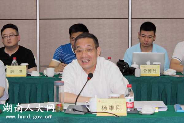 省人大常委会副主任杨维刚在座谈会上讲话。