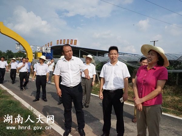 调研组深入田间地头了解衡阳市创建人大代表扶贫工作基地情况,先后到衡阳市十五届人大代表左国辉的基地衡阳鲜盛农产品有限公司、衡东县新塘镇十一届人大代表李冬云的基地衡东县谭泊现代农业示范园、省十三届人大代表刘准的基地衡阳县富农专业合作社实地调研。调研组从企业规模、生产状况、员工来源及待遇、发展目标、遇到的困难等方面,详细了解代表所在企业的发展情况和带动贫困人口脱贫致富情况。刘莲玉充分肯定代表以基地为依托、以“公司+农户”“合作社+农户”为主要模式、以合作共赢为目的的发展模式,“你的发展思路是对的,一定要坚持下去。”“你是浙江人,现在从事的工作就是在践行习近平总书记的生态文明思想,要及时把浙江的先进理念、先进技术带到衡阳来。若有水土不服的地方,我们一起来想办法。”“梅花村既要有梅花的风骨,也要有梅花的美态清香,发挥基层党组织的战斗堡垒作用,把乡村振兴与脱贫攻坚结合起来,加快推进绿色生产,大力发展乡村旅游。”