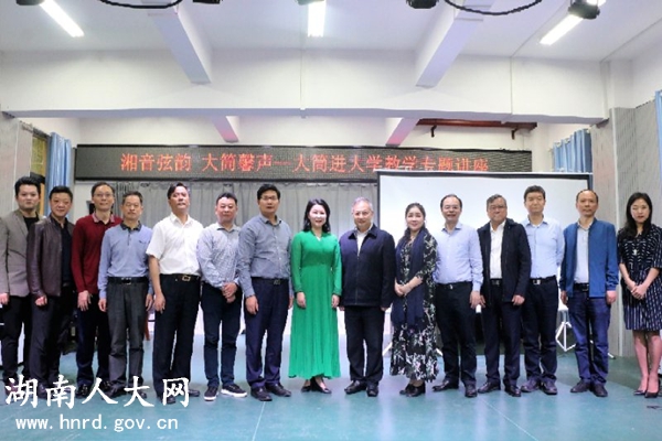 调研组一行听取了学校基本情况的汇报,并就学校工作进行了座谈交流;参加了该校音乐学院举办的“湘音弦韵,大筒馨声——大筒进大学”教学专题讲座活动。