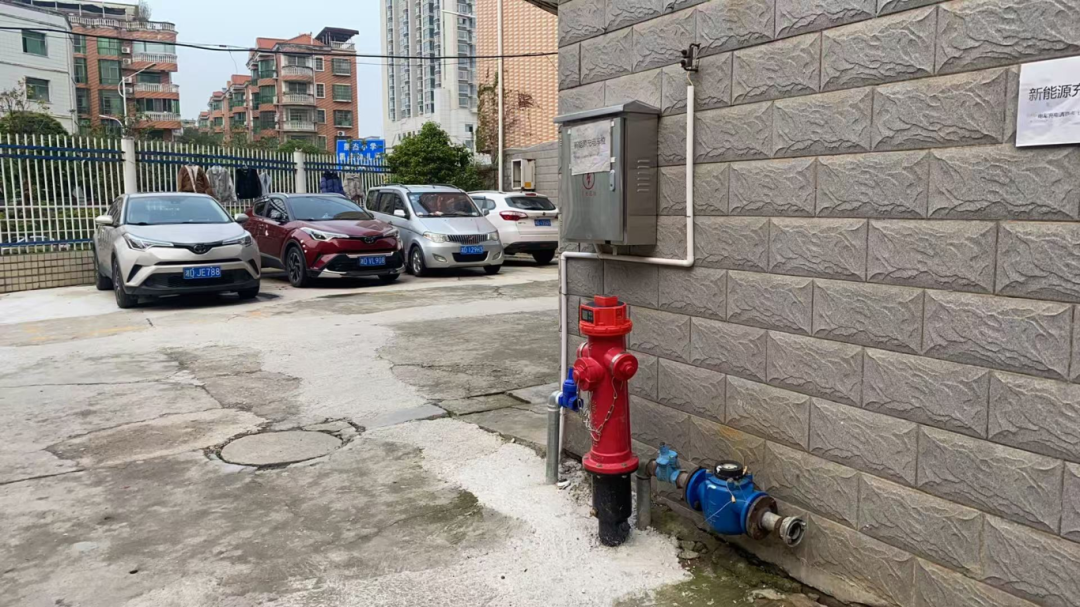 粤汉社区红星花苑配备的消防栓和灭火器。