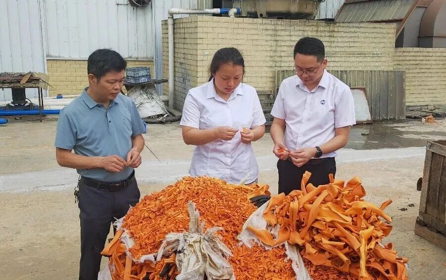 何鹏慧(中)帮助企业解决废弃物回收难题。