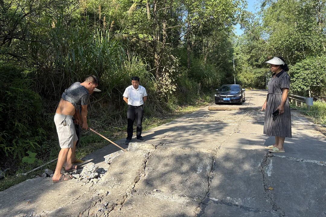 官岭镇人大代表奉桂花调研并推动破损产业路修整。