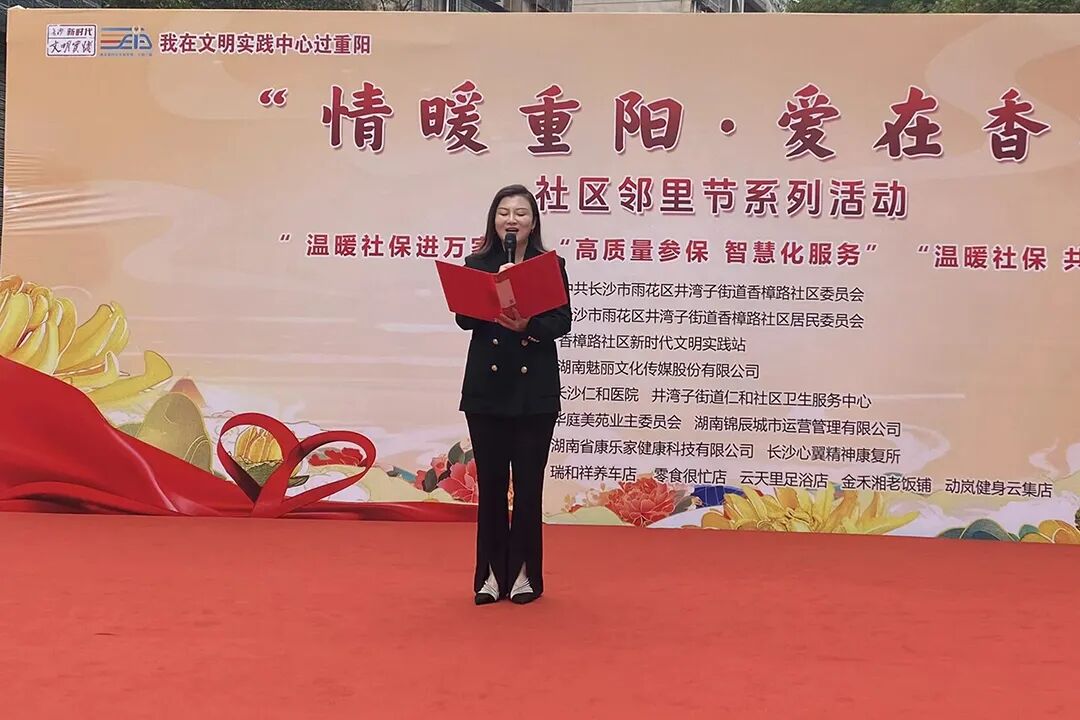 长沙市雨花区人大代表、湖南魅丽文化传媒股份有限公司总经理曾英姿宣读《敬老爱老,邻里互助》倡议书。